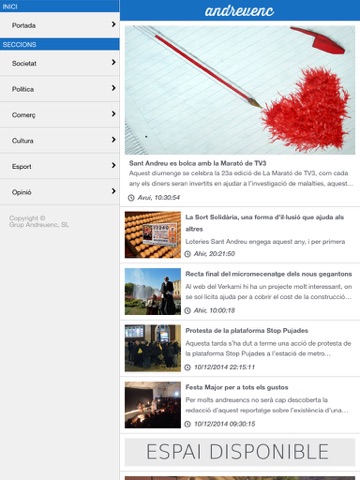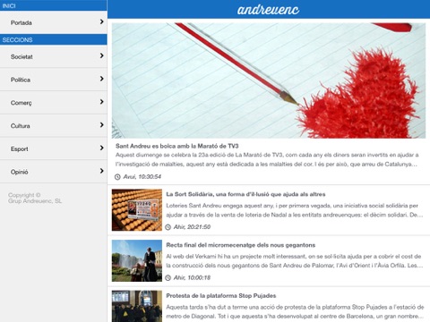 Andreuenc es el diario electrónico de Sant Andreu de Palomar, creado por un grupo de emprendedores comprometidos activamente con nuestro pueblo. Encontrarás toda la actualidad de sociedad, política, comercio, cultura, deporte y mucho más. Descárgate la aplicación oficial de Andreuenc y disfruta del diario en tu dispositivo móvil.