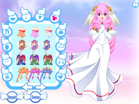 Angel Avatar is a game where you get to dress up an angel. You can change her looks in many different ways by clicking on the icon that indicates which part of her you want to change. It may be her hair, her clothes, her face or something else.
