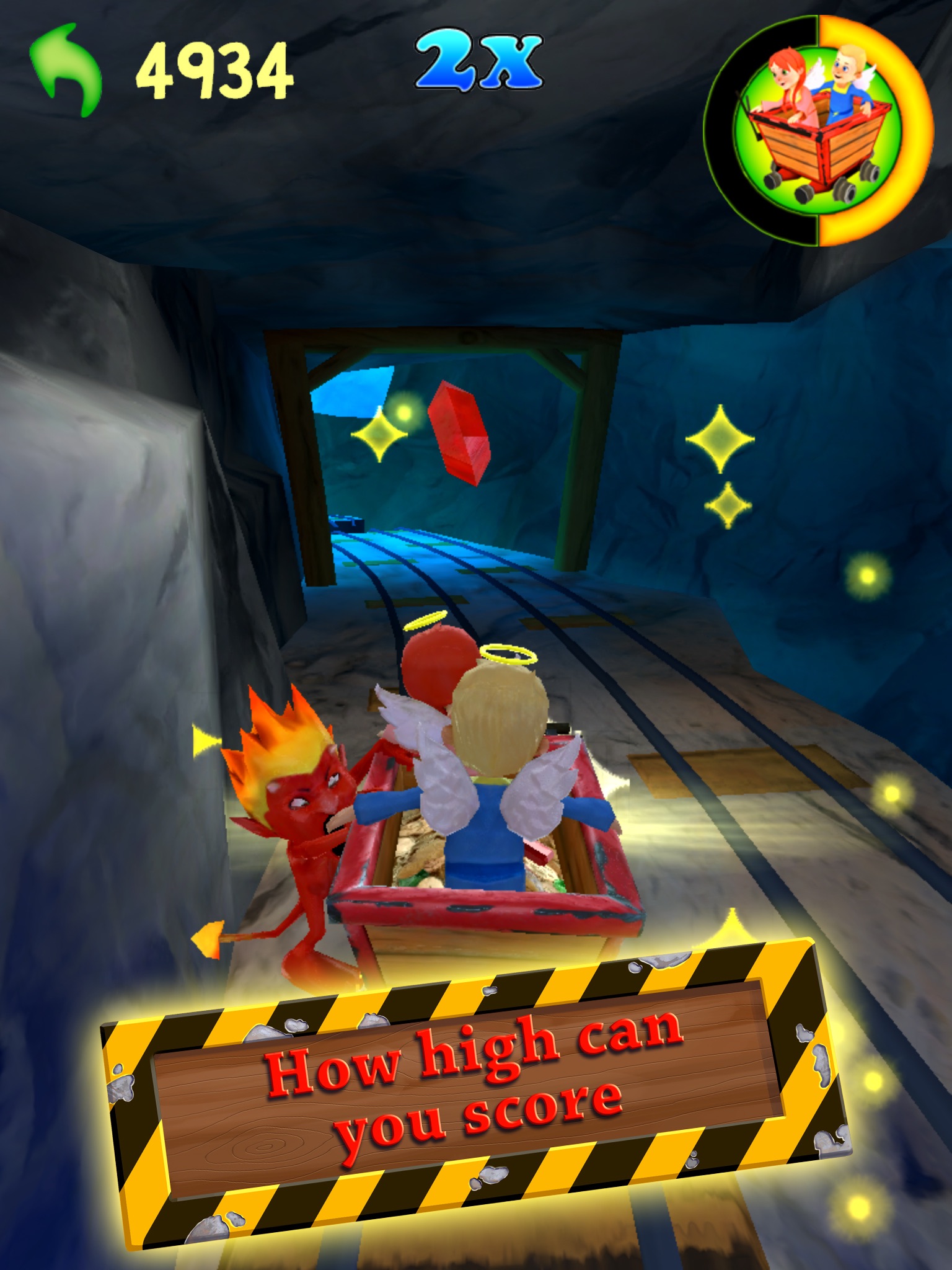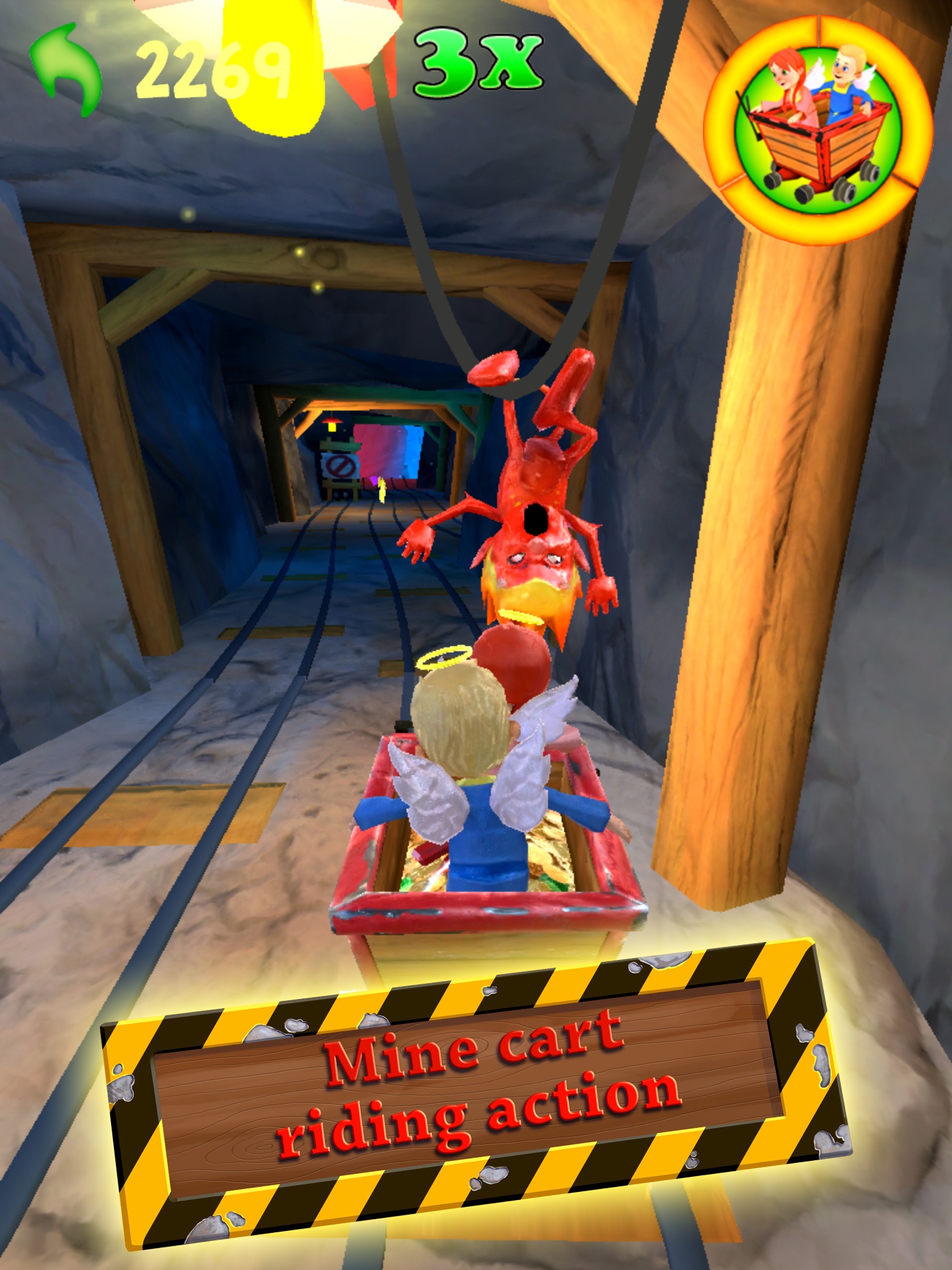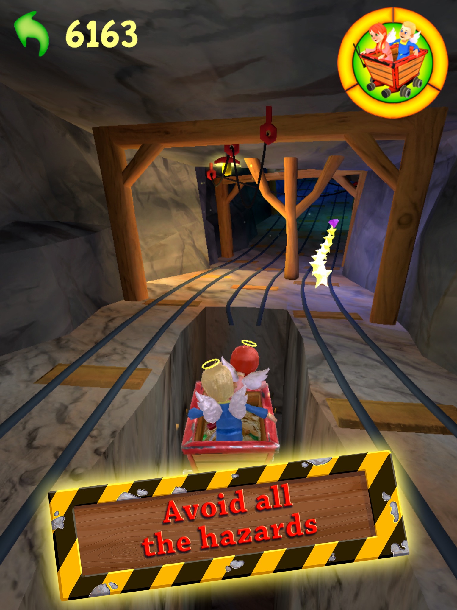 The two angel friends, Fay and Fin are heading out for new adventures, this time in a rickety mine cart, speeding along treacherous tracks filled with clingy scoundrels, dynamite and other crazy challenges! Fire away at obstacles, steer clear of traps and, collect gems, stars and other valuables!