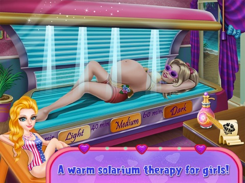 Angelina got pregnant. She is at the tanning solarium and she wants to change her look. Can you help her? In the beginning choose the best dress for Angelina, and then remove the jewelry from the body. After that select best hair style and use the trimmer for removing the hair. Choose the best glass and go for solarium. And last use the lotion for smooth skin and select best tattoo for Angelina. In this game prove to everyone that you are a responsible kid. Play and enjoy this amazing spa game and share with your friends.
