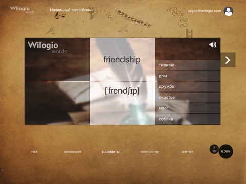 Wilogio words Английский язык поможет изучать английский язык по системе «живого» построения методики для каждого пользователя.