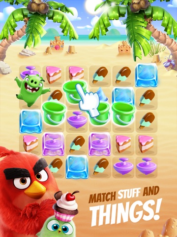 Match 4 or more items to bring out the BIG BIRDS – Red, Bomb, and Chuck!