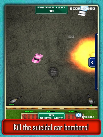 Take your weapons and set up a defense base to shoot the cars!