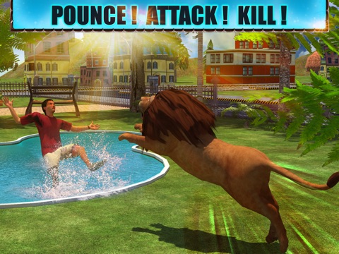 Pounce, attack and kill all you want! You are an angry lion out to look for food! Get into action! There are people and animals all around you! Attack and slaughter! No shortage of food. Move about your hairy form and pounce with all your might. Look for your prey. Attack with the skill of a mighty hunter and the ferocity of the jungle king. Violently attack anything that gets in your way. You are the most feared carnivore in the area!