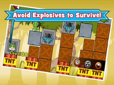 Help the hero lizard break free the pet birds trapped in the cages, by jumping blocks and avoiding dangerous bombs.