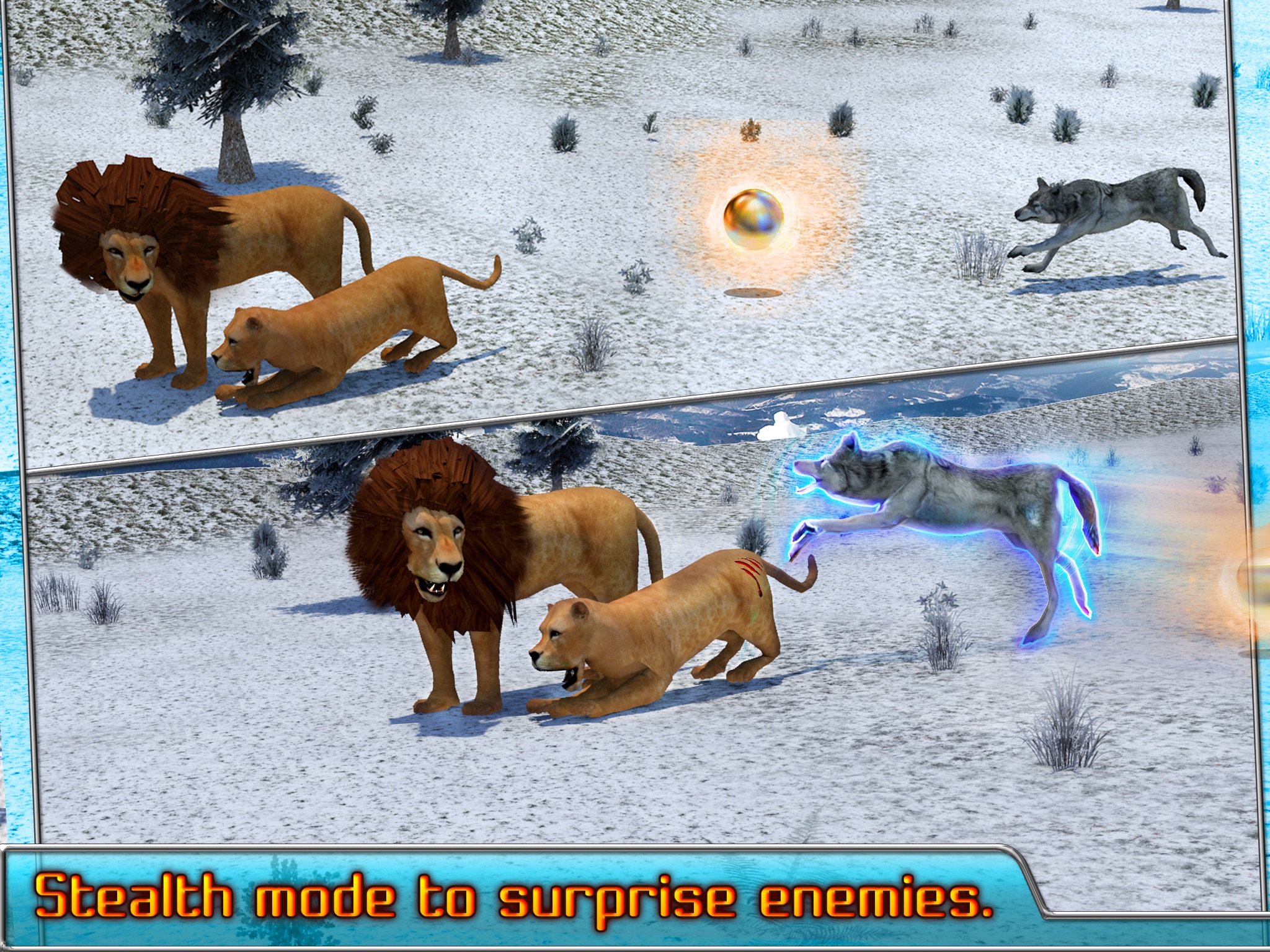 · Stealth feature – collect stealth power ups and disappear from other animals’ view for a while