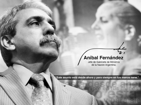 Aníbal Domingo Fernández (Quilmes, Buenos Aires, Argentina, 9 de enero de 1957) es un político, contador público y abogado argentino afiliado al Partido Justicialista. Recibido de contador público el 6 de marzo de 1982 en la Universidad Nacional de Lomas de Zamora y de abogado el 19 de diciembre de 2001 en la misma institución. Desde el 26 de febrero de 2015 se desempeña como Jefe de Gabinete de Ministros de la Presidencia de Cristina Fernández de Kirchner. Con anterioridad había sido designado Secretario General de la Presidencia. Previamente se desempeñaba en el senador nacional por la provincia de Buenos Aires, cargo para el que fuera electo en las elecciones generales de octubre de ese año con 4.500.000 de votos. Anteriormente, desde el 8 de julio de 2009 hasta el 10 de diciembre de 2011 se desempeñó como Jefe de Gabinete del gobierno nacional de la República Argentina