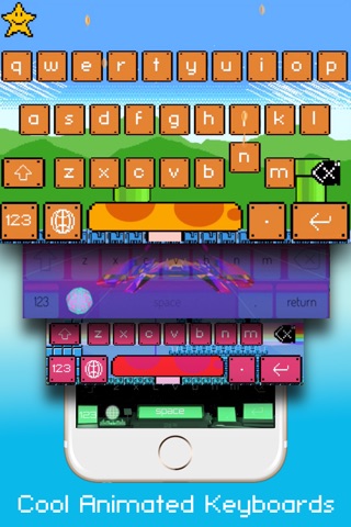 Do you want to type on a colorful, animated keyboard? AniKeys brings you fun animated keyboards, replacing the dull, boring built-in keyboards on your devices. These keyboards are interactive, having special effects such as coin boxes and lasers shooting from spaceships when keys are pressed. Updated for OS 9.1 with over 1600+ emojis.