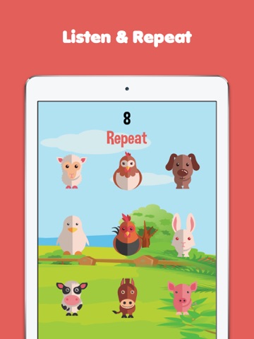 Animal Conga is here! Listen to the animal sounds, memorize their order and repeat them.