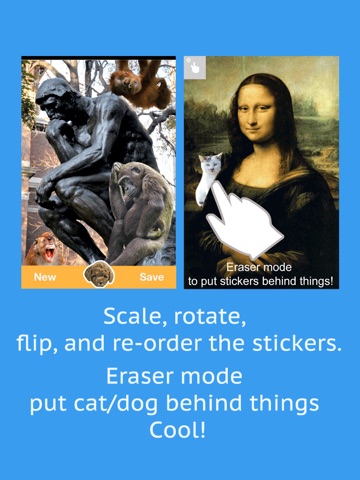 ★★ Eraser mode - you can use eraser to change the cat/dog stickers to put them behind things - cool!