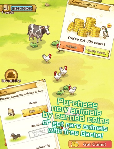 You can purchase new animals, or get rare animals with free Gacha with earned coins!