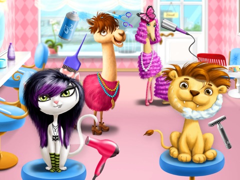 Crazy animal hair care salon has four very hairy clients - Llama, Kitten, Poodle and Lion. Don’t keep them waiting! Play pet stylist now and give your new furry friends a super fun hairstyle makeover!