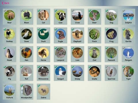 This app is so simple that even a baby could manage it. Just touch the screen with your finger to hear the sound of the animal. Swipe right or left to go to previous or next animal. This app also provides information of the animal, its baby name and life span