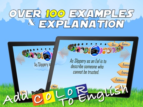 What does it mean to describe someone to be "As Slippery As An Eel" ? This App is going to help your child falls in love with the English Language as he learns useful similes to add color to his English vocabulary.