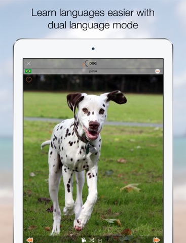 With the language change option the animal sounds application can also be used as a set of cards to learn the language (kids learn animals in 35 different languages).