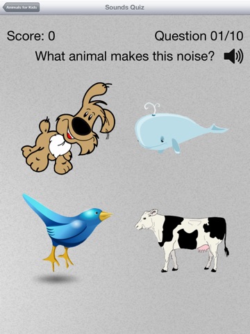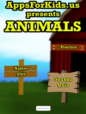 Apps For Kids - Animals teaches your child animals by both their name, and the sound they make. There is a practice mode, and a quiz for animal names for free. There are 10 animals for free, but for $.99 you can upgrade to all 30 animals and a sound quiz.