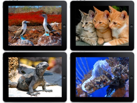 This outstanding photo collection of 116 images of animals from around the world will dress up your iPad. See the spectacular "Blue-Footed BOOBIES", (what are Boobies, you ask?) How about the pure white baby llamas of Peru and laughing camels in Egypt? See puppies, kittens, horses and baby elephants as well as snakes, lizards, tigers and bears... oh my!