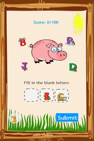 Learning English for kids by filling in the animals blank or missing letters.
