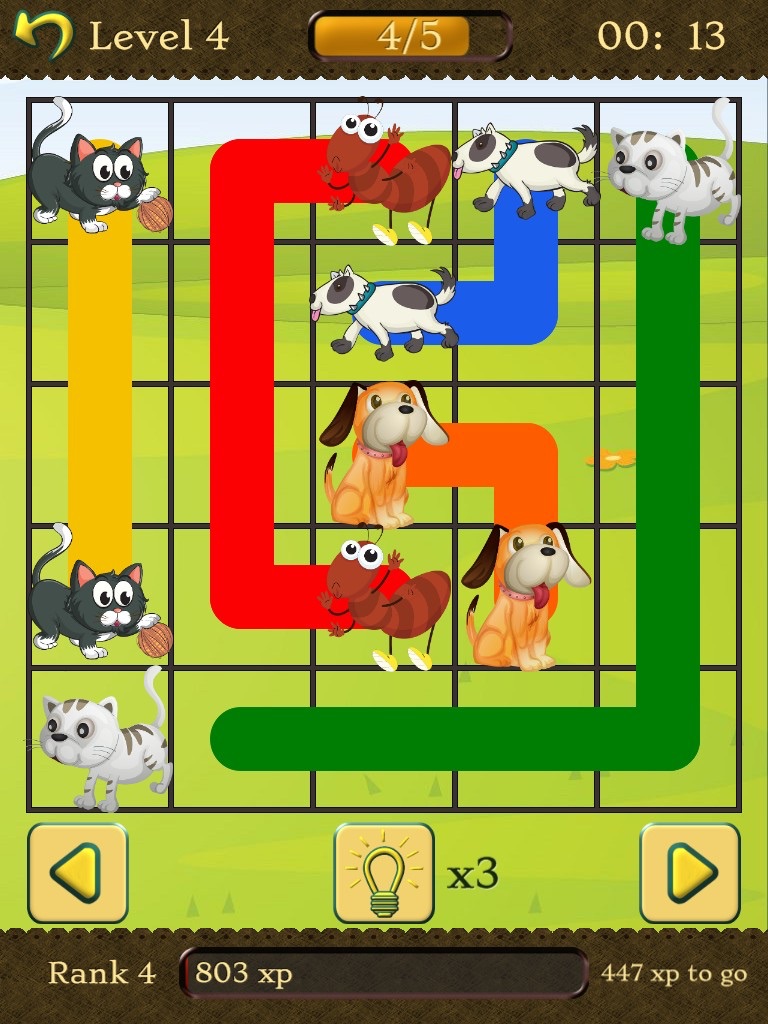 Pair all animals, and make sure to cover the entire board to solve each level in Flow Animals.