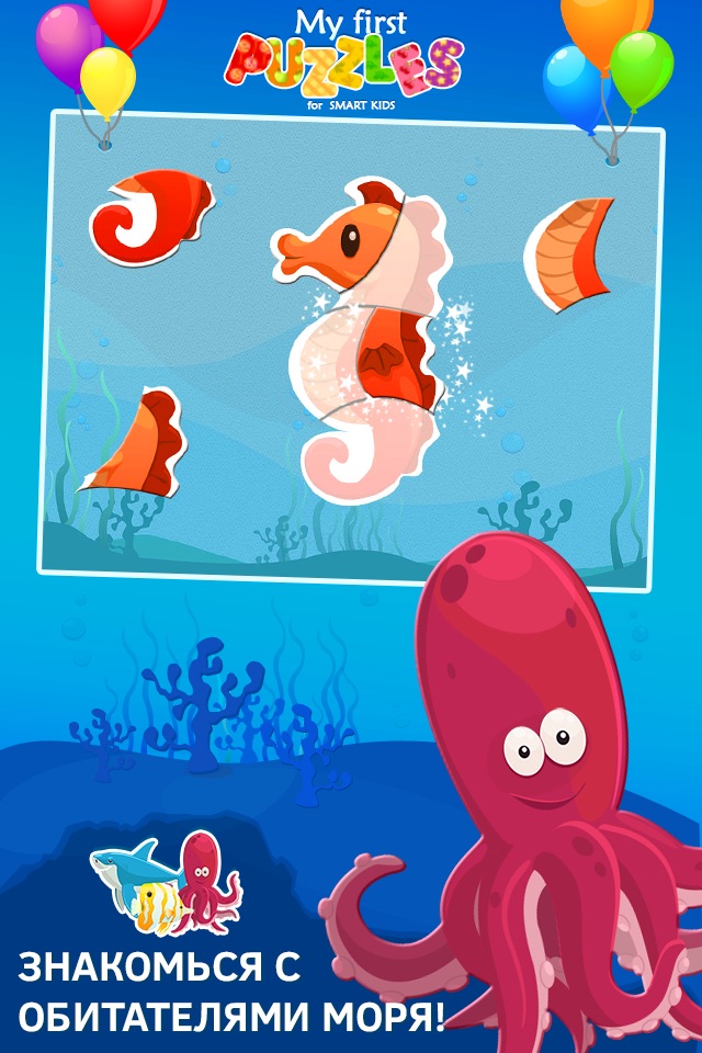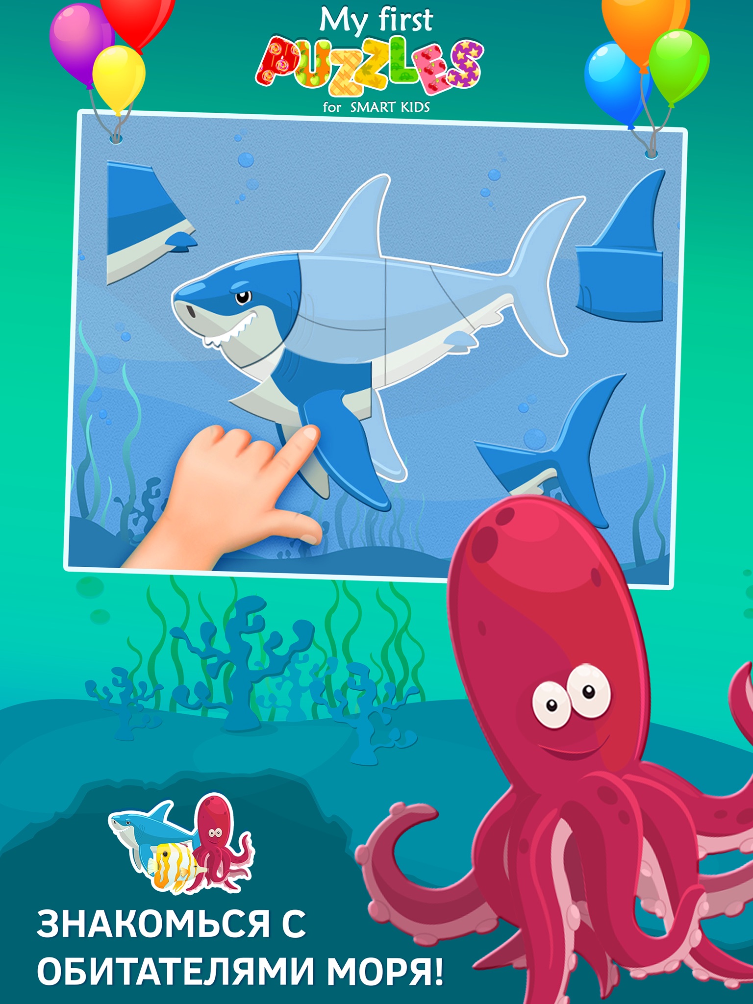 This Lite Version of our fish puzzles for toddlers is all about Sea Animals. Take an imaginary dive to the bottom of the ocean and meet its inhabitants: cute octopus games, various fish, funny dolphins and the terror of the sees – shark in live jigsaw puzzles free!