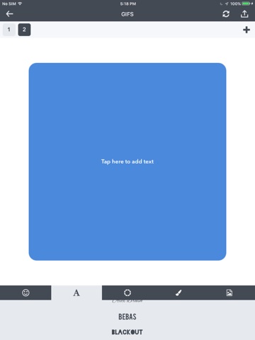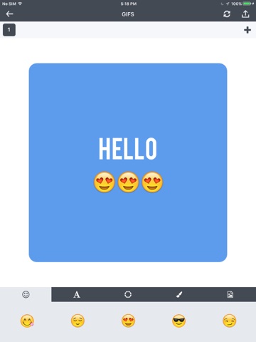 Animated GIF Creator! user to create a gif by building each frame content such as the background image, the background color and the text with its font and its color. The user can add any text he/she want as the text adapts itself to the frame, can add any image from its camera or gallery and can add the Apple emojis as stickers.