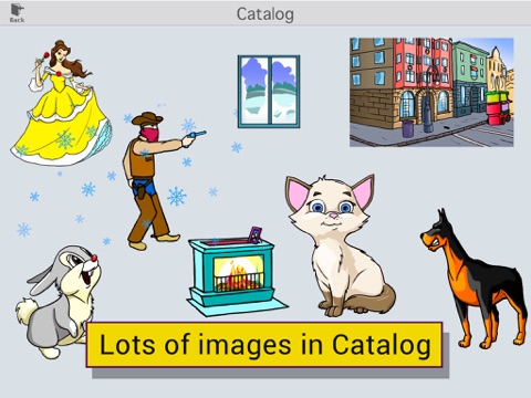 Explore the Catalog for both professionally made backgrounds and animated drawings (animated drawing patterns). You can easily add them from Catalog to your animation.