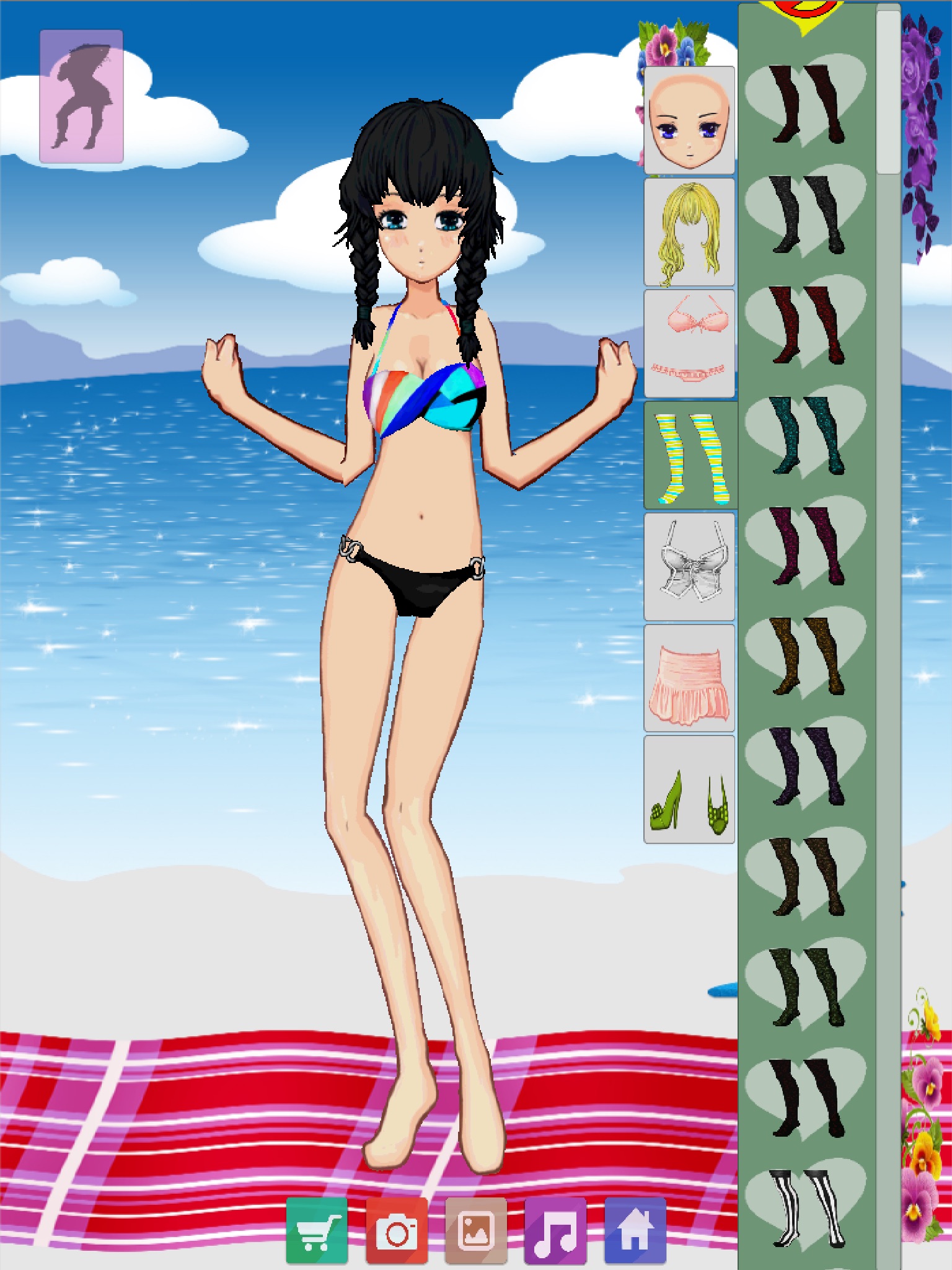Choose a different theme as the background scenery, whether its the sunny beach, a sophisticated cafe, or a trip to Paris! Then you can save your anime dress up outfits in your image gallery on your phone or tablet device. Show off your fashionista skills to your friends and family, or... heres a great idea: create different looks for your cutie fashion anime girl and use them as the display image in your phone contacts!
