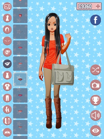- Change background, skin color, hair style, eyebrows, eyes, lips, top (shirts, bras, etc.), bottom (pants, skirts, leggings, - underwear, etc.), socks, shoes and even accessories (purses, necklaces and other objects).