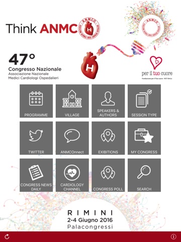 Applicazione ufficiale del 47° Congresso ANMCO 2016, in programma dal 2 al 4 giugno a Rimini, per la fruizione di tutti i servizi offerti al Congresso.