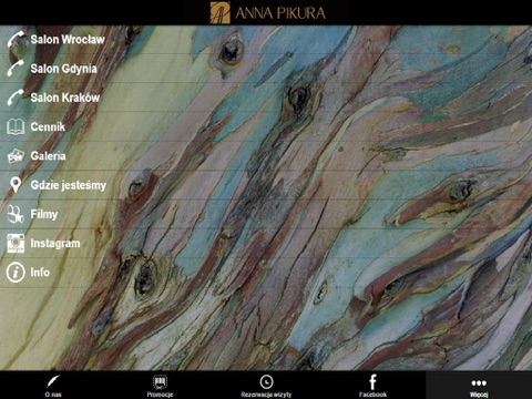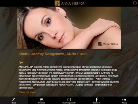 Salon kosmetyczny pozwoli Państwu na skorzystanie między innymi z zabiegów odmładzających i rewitalizujących, autorskich masaży na bazie kolagenu, manicure i pedicure, specjalnych zabiegów dla odmłodzenia i pielęgnacji twarzy, szyi i dekoltu, mikrodermabrazji. Oferujemy także specjalistyczne zabiegi na bazie kolagenu aktywnego biologicznie AP BIOAKTIV oraz biokosmetyków ANNA PIKURA.