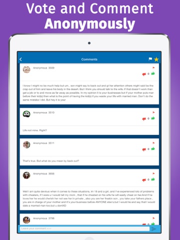 - "I love this app, it is the perfect way to get advice from many people, and remain anonymous!!!! 5 stars!"