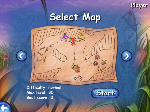 The aim of game is to assign each ant a task according to its type: collection of construction resources, restocking food or scaring the enemy bugs. To do this, the player must assign (draw) a path from the anthill to its purpose. When receiving a specific task (to get some resource or attack), the ant crawls out of its burrow and goes towards its goal according to the trajectory. Then it’s necessary to bring the trophy back to the anthill. But beware of enemy bugs, they may temporarily stun an ant and it will lose the trophy. The main task of soldier-ants is to avoid enemy bugs to the anthill. This must be paid much attention.