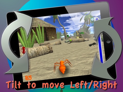 You are controlling the Ant. Your goal is to earn maximum points by collecting fruits jumping on the scene. You must avoid collisions with scene objects and other insects - that will damage your ant. You also can call battle ants to clean your way from insects and earn extra points.