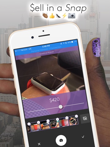 - Post an item for sale in less than 60 seconds, using your phone to snap photos