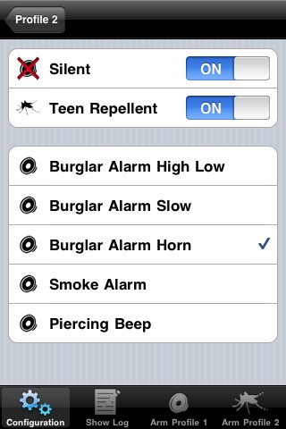 iPhone and the iPod are attractive targets to thieves everywhere. Whether you are dining at a restaurant, studying at the school library, or working hard on the job, someone will try to steal your valuable music player. Anti-Theft provides the first line of defense by blaring out a loud siren that will startle the robber, alert you of the thiefs presence, attract the attention of everyone nearby, and force the thug to abandon the heist. For even stronger deterrence, you can combine the ear-piercing sound with the Mosquito Alarm, aka Teen Repellent, an annoying high frequency audio that can cause great discomfort in young people.
