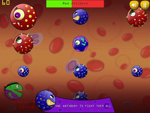 There are the viruses, the germs, the pathogen and then there is the Antihero...I mean the Antivirus. The Antivirus game presents an unlikely antihero which has turned against his own kind to protect you. Bringing along unique gameplay where you are in control of the Anti Virus, armed with the Red and Blue Antidotes, you take the fight to the enemy camp. A side scrolling never ending game, move your Antivirus up and down, moving through the crowd of pathogens and viruses, picking up the right kind of Antidote for the virus.