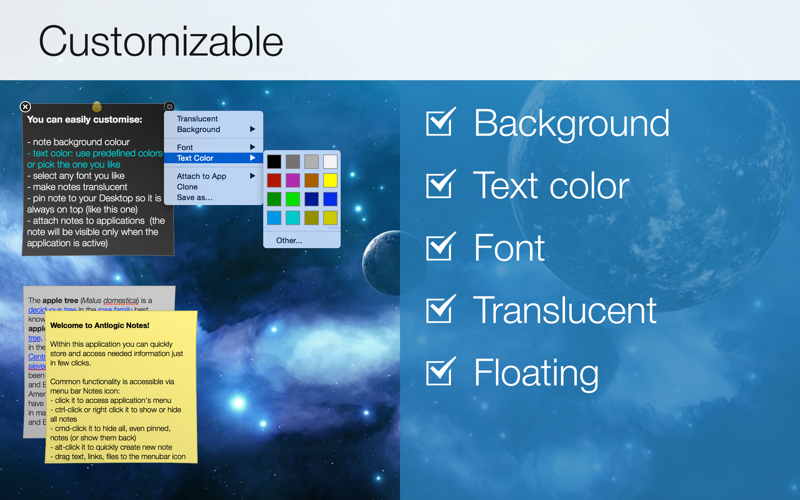 This app has lots of customization options, but it isn’t at all cluttered. You can attach apps to specific applications, so they only show when that program/app is running. Super convenient. This is the perfect digital post-it app.