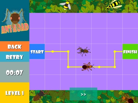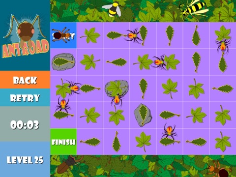 Antroad, the digital crawl, requires timing, skill and recollection. Navigate the ant through numerous levels and guide it from the starting point back to its lair by passing various other insects and obstacles. Use a finger to draw the right path and the ant will follow.