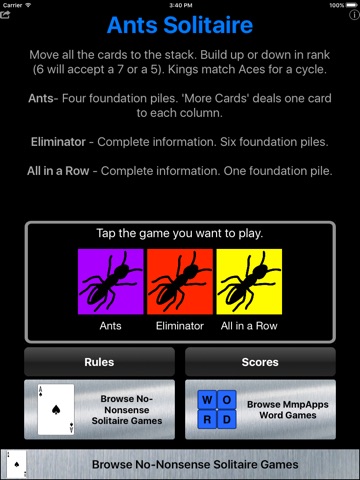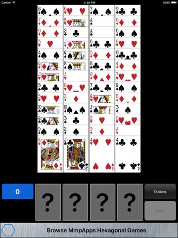 Ants - Four foundation piles. More Cards deals one card to each column.