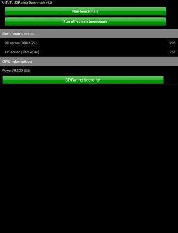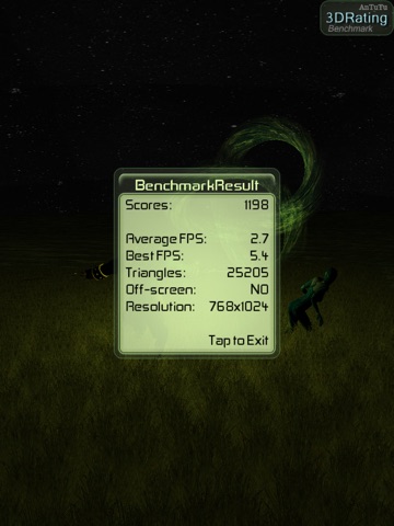 Средний fps - 25 Лучший fps - 37 Для справки, имею Galaxy S3, там лучший результат - 17 fps, с его то мощами! Я так понимаю этот бэнчмарк недавно на iOS? Работает все хорошо, качайте.