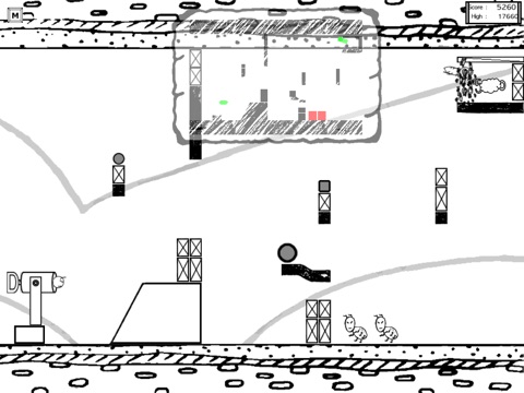Zoomed view window automatically follows flying ants and falling boulders during game play.