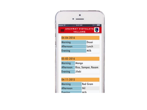 - Daily food menu such as Morning Snacks & Breakfast, Afternoon Lunch and Evening snacks can be viewed through this application.