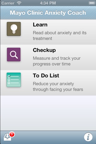 Mayo Clinic Anxiety Coach is a comprehensive self-help tool for reducing a wide variety of fears and worries from extreme shyness to obsessions and compulsions. Anxiety Coach helps you make a list of feared activities and then guides you through mastering them one by one. Through this experience you can increase your confidence as you become less fearful and worried.