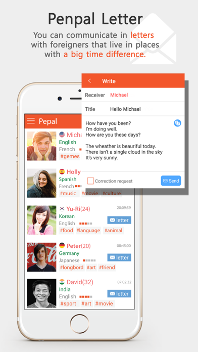 You can make friends while you freely make chatting, follow, like, and pen pals with whom you want.