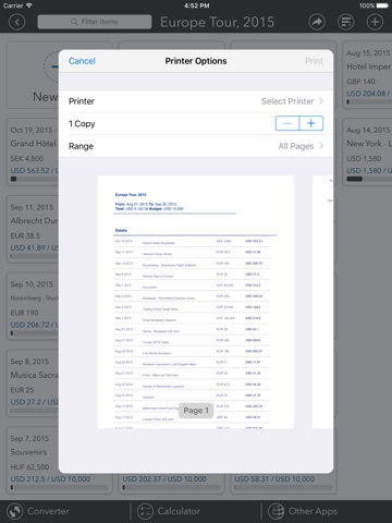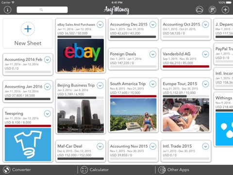 You can create multiple sheets to organise your multi-currency transactions. You can assign a budget, set start and end date, and add a description if you wish. You can assign thumbnails to sheets or tag them using colours. Sheets can be sorted using several criteria.
