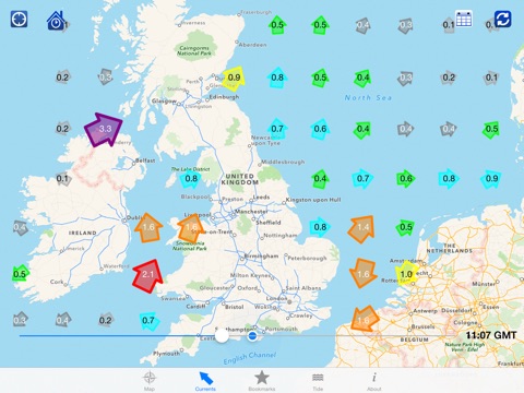 · UK current predictions based on computer models developed at NOC, enabling tidal current predictions at any grid box in the surrounding shallow seas. Tidal currents in areas other than the UK are in the works for future updates.