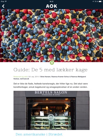 Med AOK på iPhone eller iPad finder du altid de bedste guides til og seneste nyheder om København i et overskueligt og lækkert design. Tjek for eksempel de bedste restauranter, i vores restaurant guides, kulturoplevelser og personlige anbefalinger fra AOKs skribenter, eller lad dig inspirere af vores store database med begivenheder og oplevelser i hele byen eller et sted nær dig.