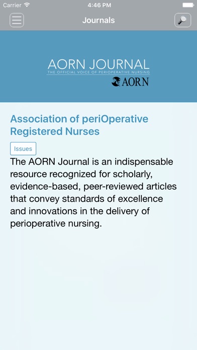 A leading perioperative nursing journal is now available on your iPad and iPhone. The Association of periOperative Registered Nurses Journal brings you a stimulating, high-impact mixture of Review Articles, Highlights, Communications, and more. Enjoy an entirely new browsing and reading experience, and keep up to date with the most important developments in chemical research even faster: