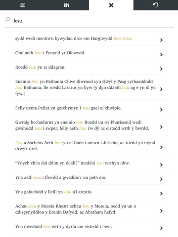 - Pori cyflym i unrhyw bennod neu adnod