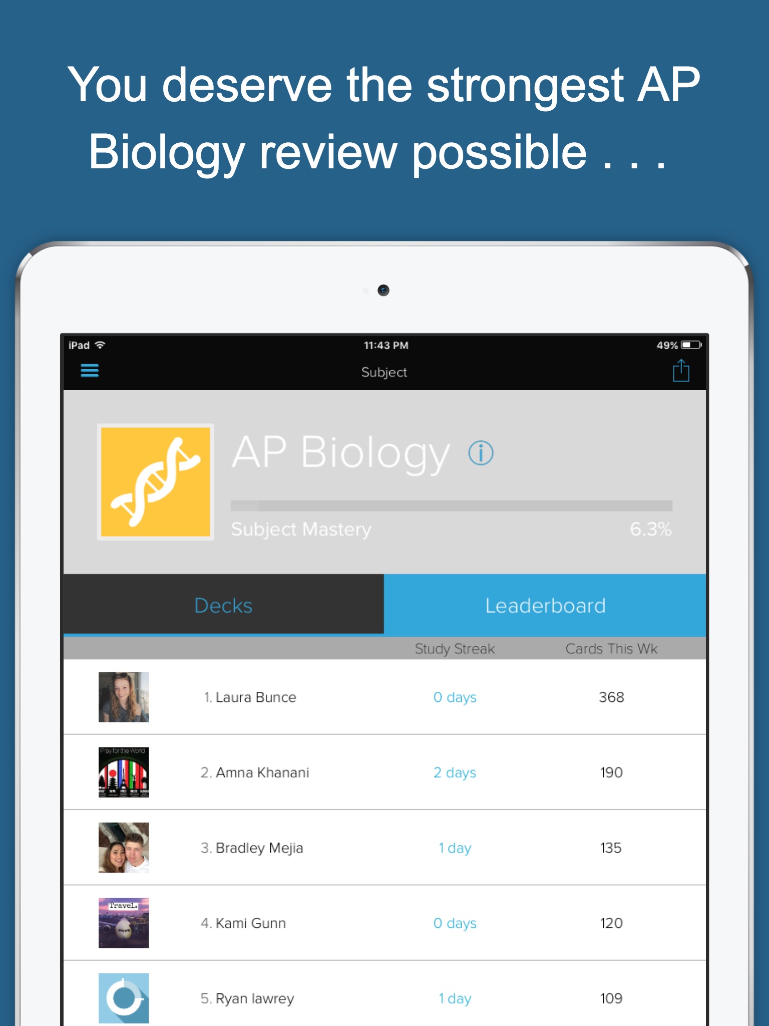 - Check the leaderboard to see whos studying the most!